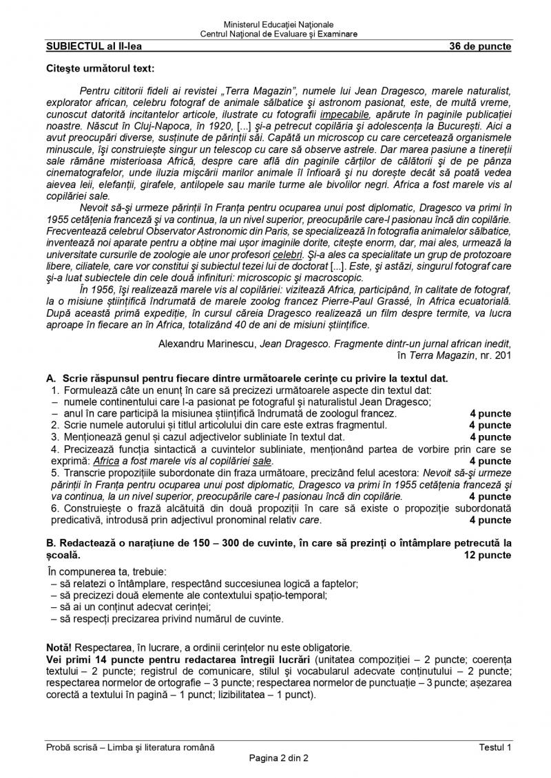 Subiect Romana Evaluare Nationala 2021 - Modele Subiecte Evaluare Nationala Clasa 8 2021 Limba Romana / Modele de subiecte la limba română și matematică, publicate pe edu.ro.